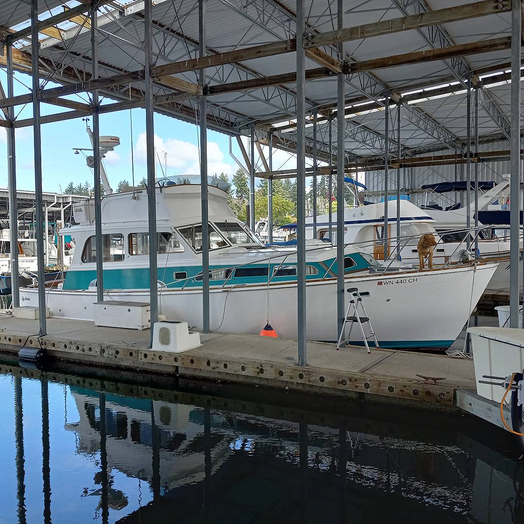 The initial Perkins diesel engines were replaced in 1996 to 240hp Perkins turbocharged diesels. Always moored in covered slip, this Egg Harbor has received unwavering attention to maintenance by its owner. An opportunity not to be missed For further details or to schedule a viewing, contact us by phone or email.