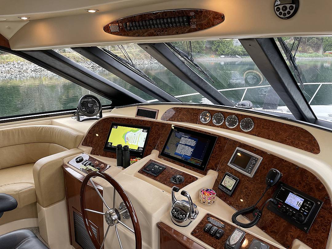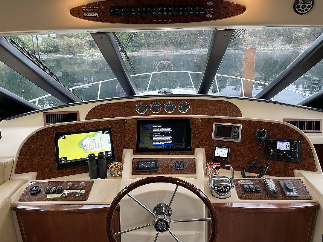 This 580 Pilothouse is a true Meridian flagship. In the last two years (2022 2023) this luxury yacht has been repaired, had replacements, and been revitalized to bring it fresh into today's yachting world. The salon, dinette, and galley have new flooring along with the great seating for many and the stellar view all round. Full electronics for navigation and communication are in the pilothouse and on the flybridge with great visibility from both. The vessel has a full beam master stateroom with ensuite and the two guestrooms share a full shower and head. Entire vessel has HVAC controlled independently in all areas. Washer and dryer, water maker, and other amenities complete the experience aboard. Cummins power in the twin engines can economically take you casually along your journey or can get you up and go if needed. An Onan generator will take care of your electric needs as you enjoy your adventure, and upon arrival, stern and bow thrusters will assist in docking in the smallest places.