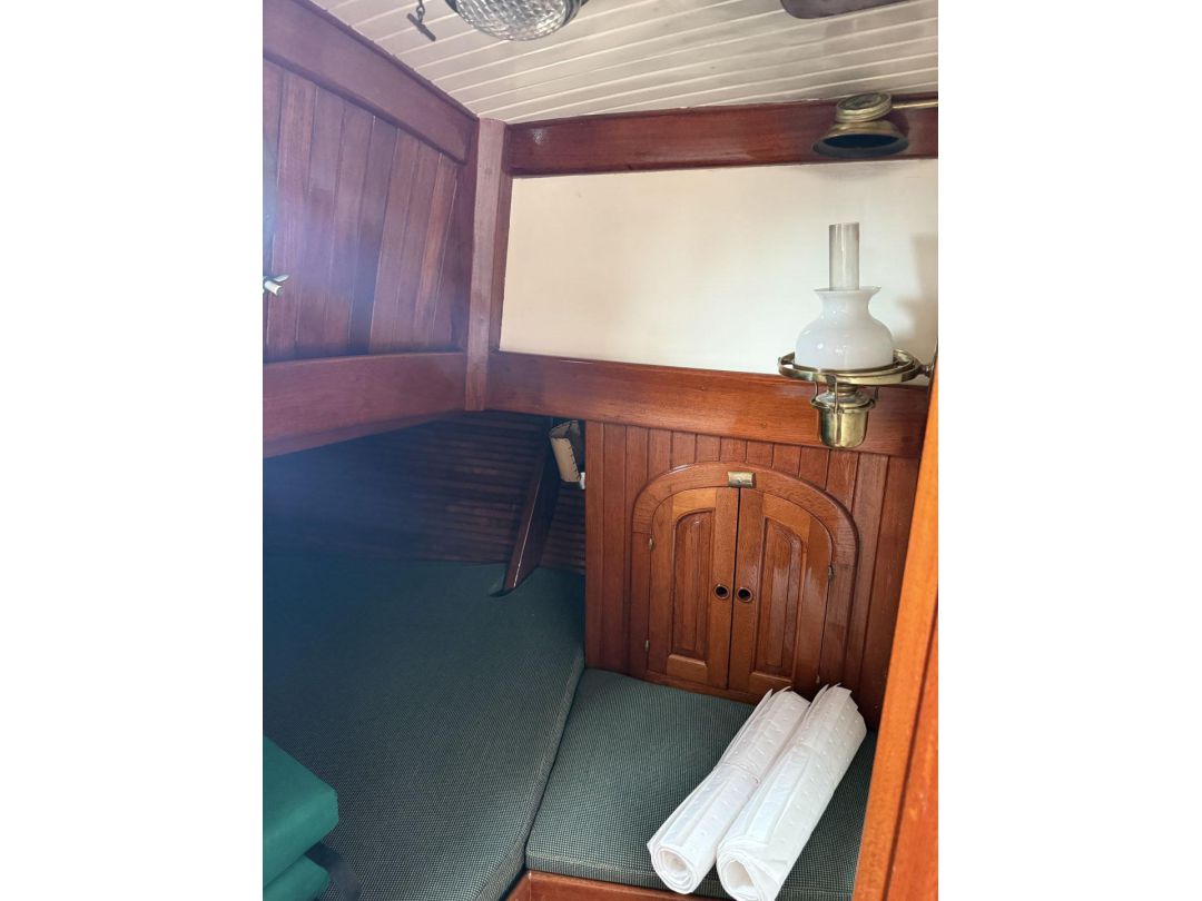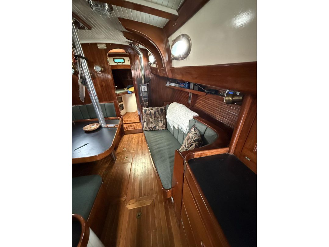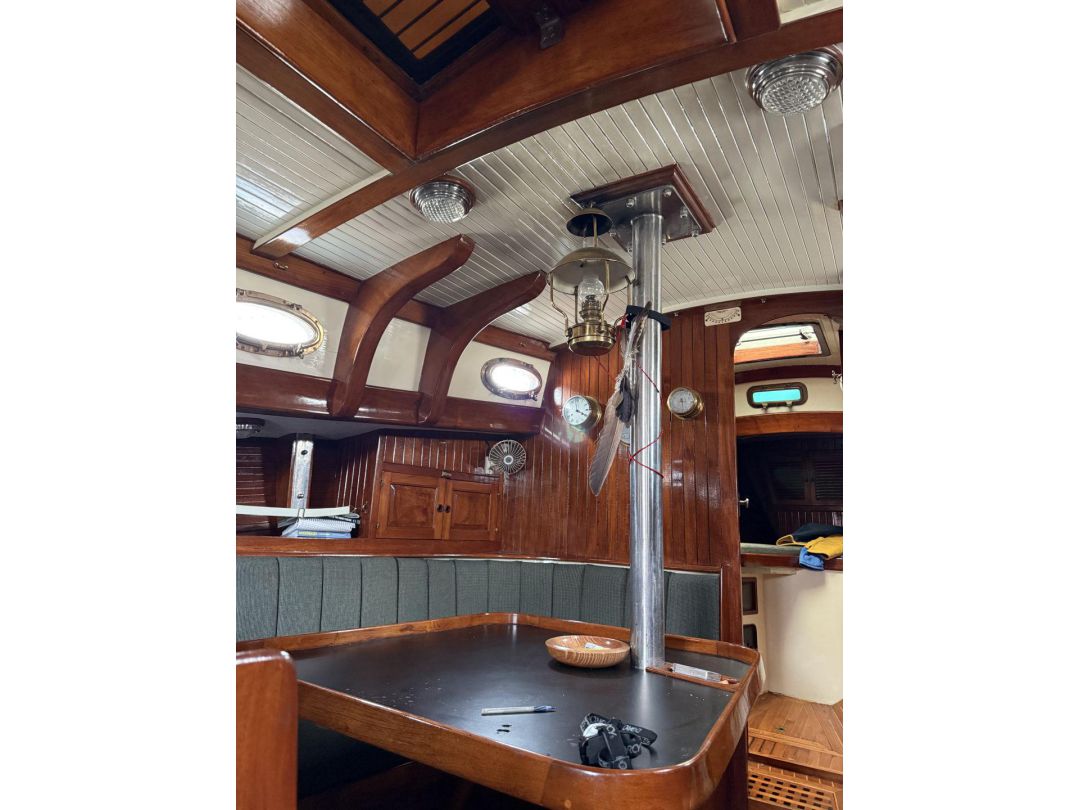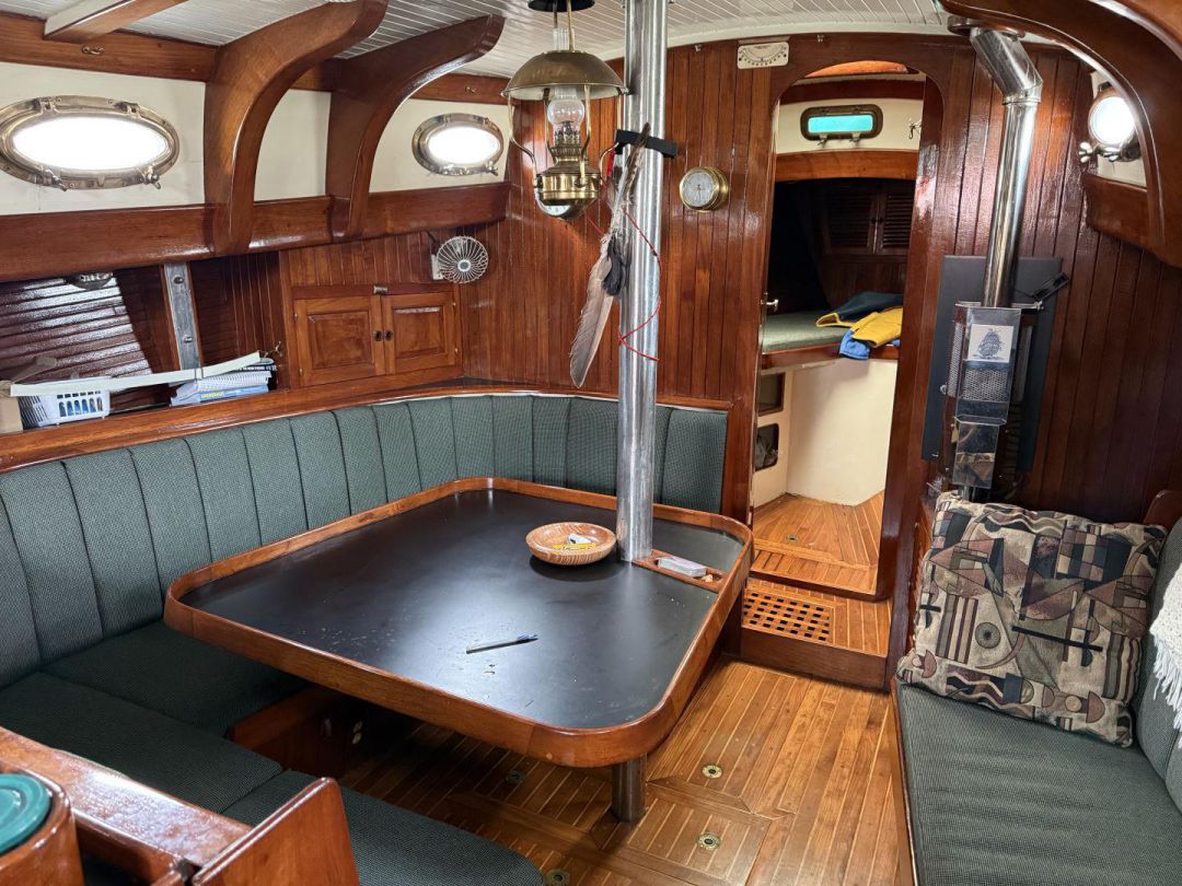 With her graceful canoe stern, robust hull, and rich teak interior, the Hans Christian 38T offers both safety and comfort for long-distance voyages. Below deck, the handcrafted woodwork, spacious saloon, and well-appointed galley create a warm and inviting retreat for extended cruising. Designed to handle demanding ocean passages, this yacht tracks beautifully under sail while providing a smooth, comfortable ride.
