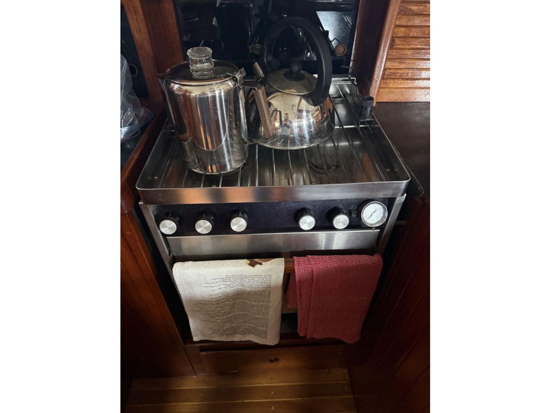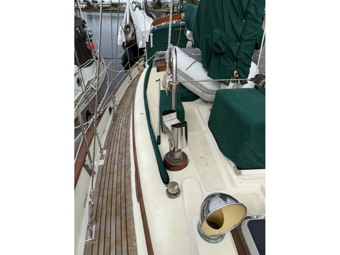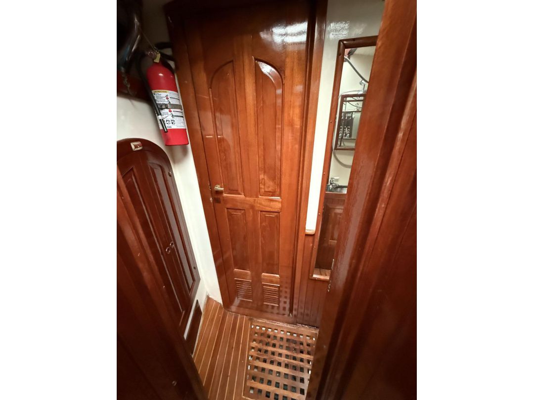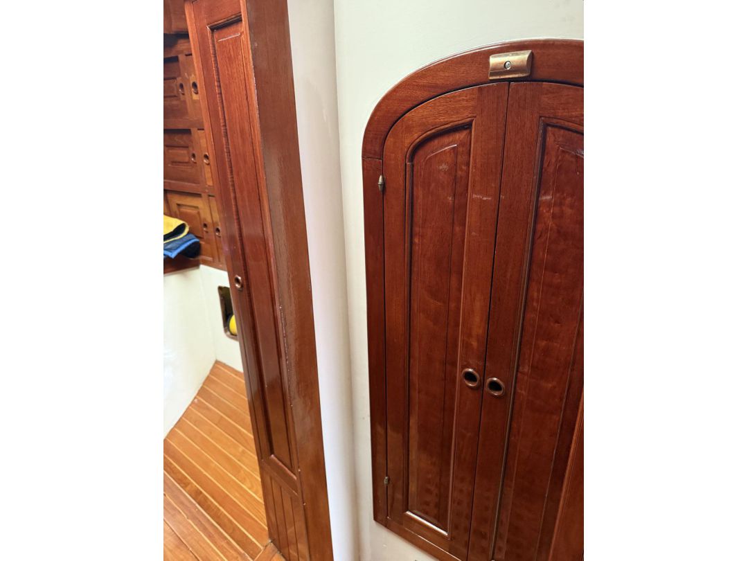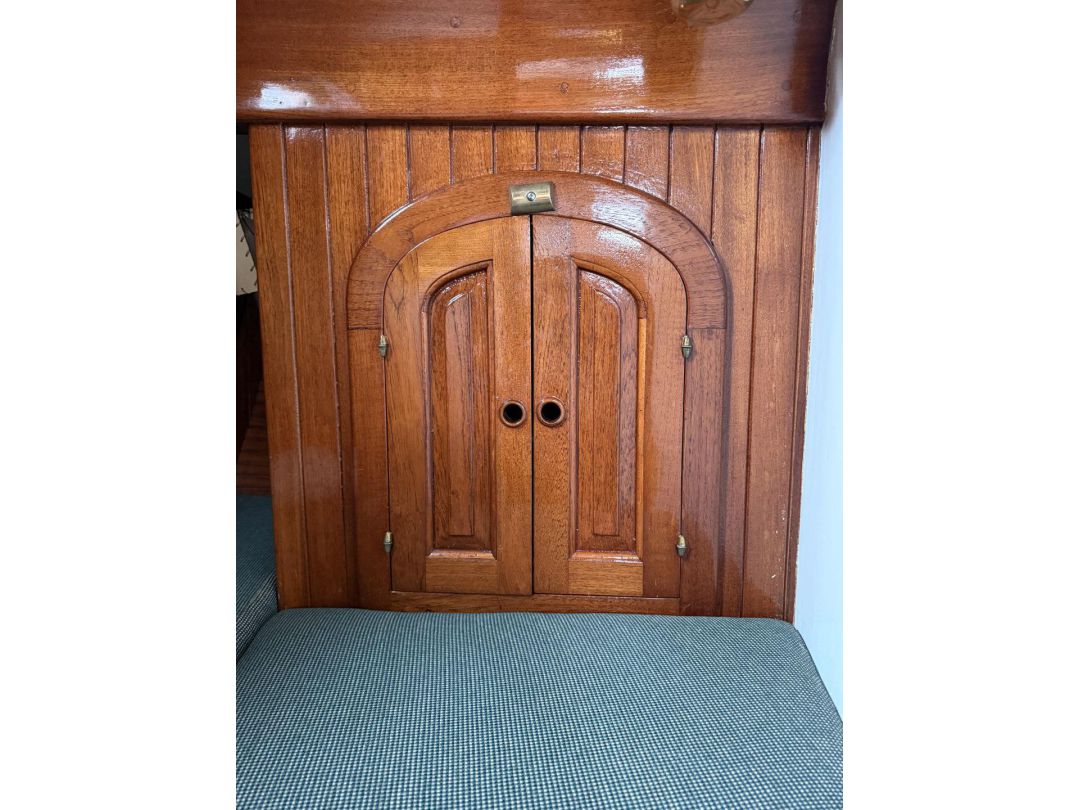 With her graceful canoe stern, robust hull, and rich teak interior, the Hans Christian 38T offers both safety and comfort for long-distance voyages. Below deck, the handcrafted woodwork, spacious saloon, and well-appointed galley create a warm and inviting retreat for extended cruising. Designed to handle demanding ocean passages, this yacht tracks beautifully under sail while providing a smooth, comfortable ride.