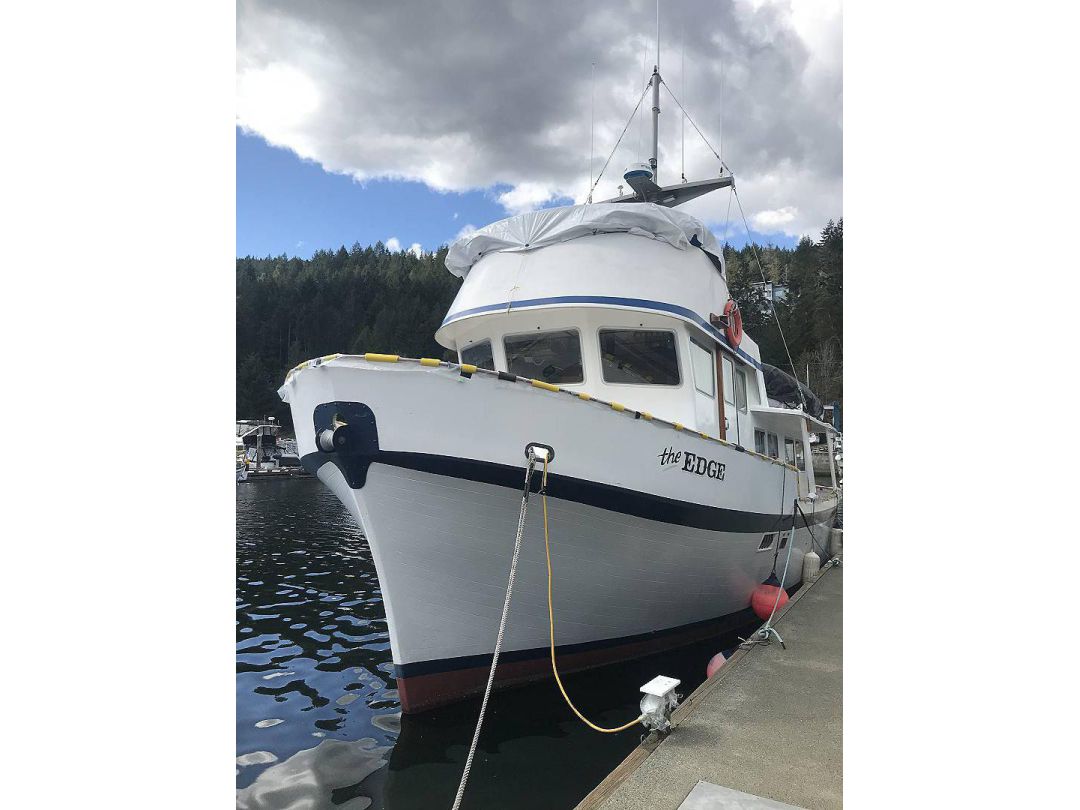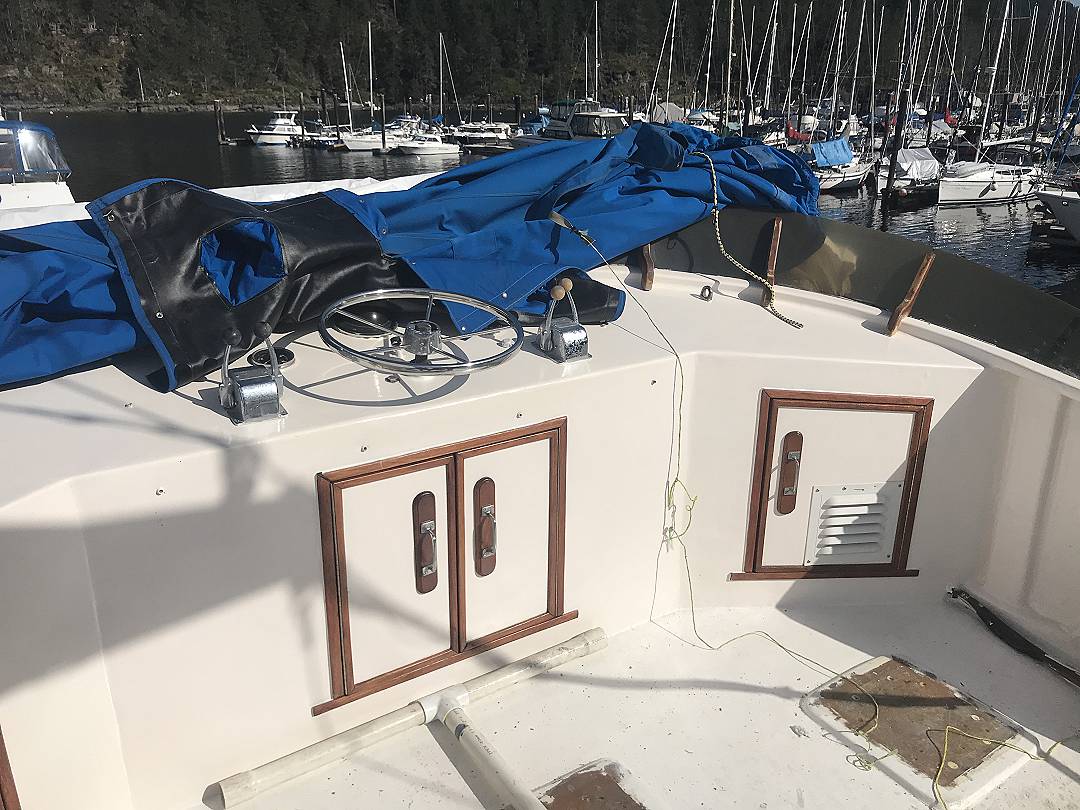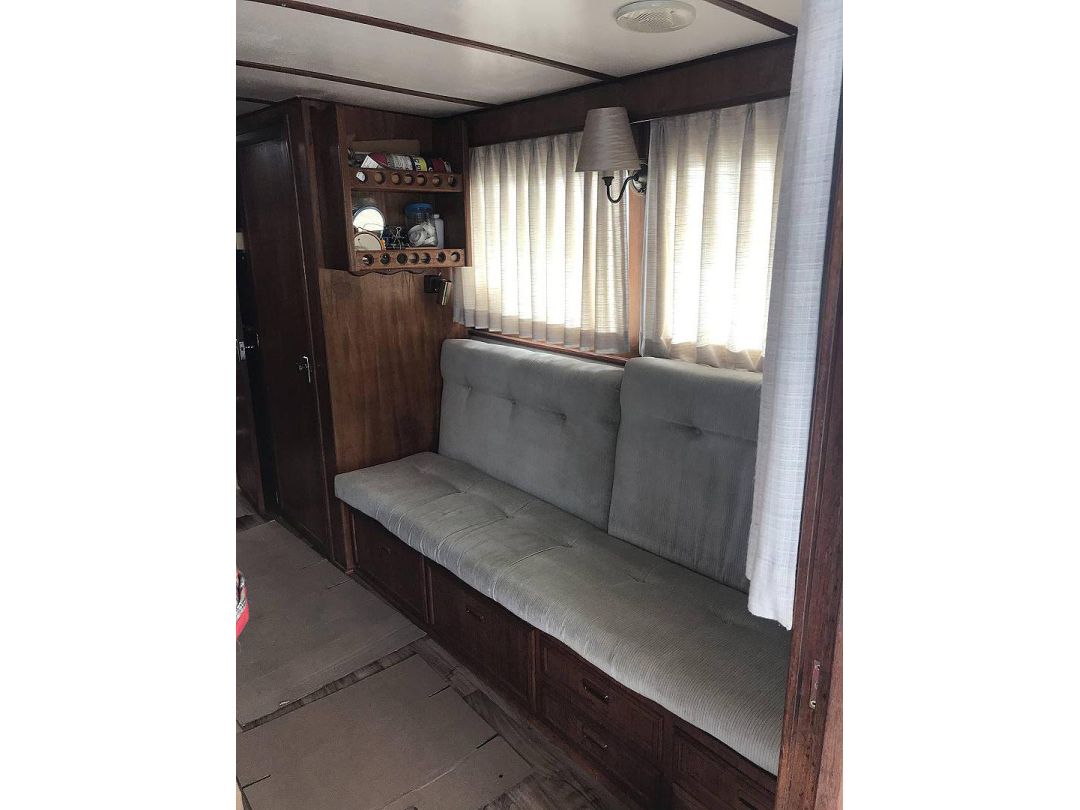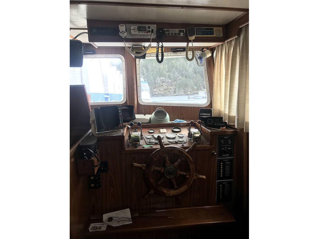 Bill Garden designed pilot house cruiser. Ideal for couple and guests or small family. High bulwarks for safety. Economical engines twinned for safety. Good size in wheelhouse and in salon.