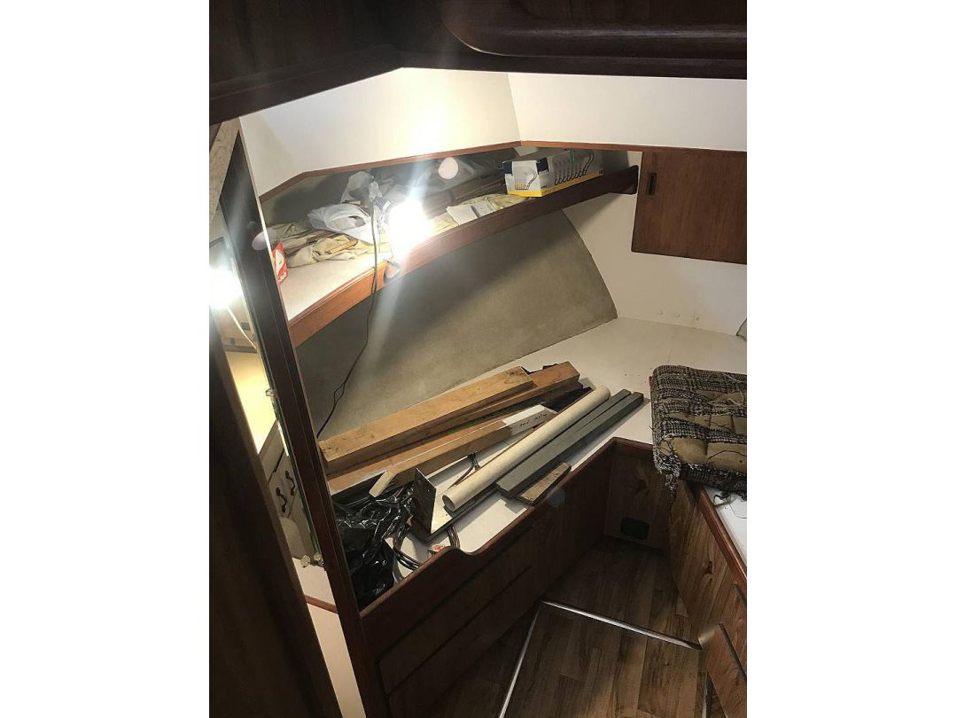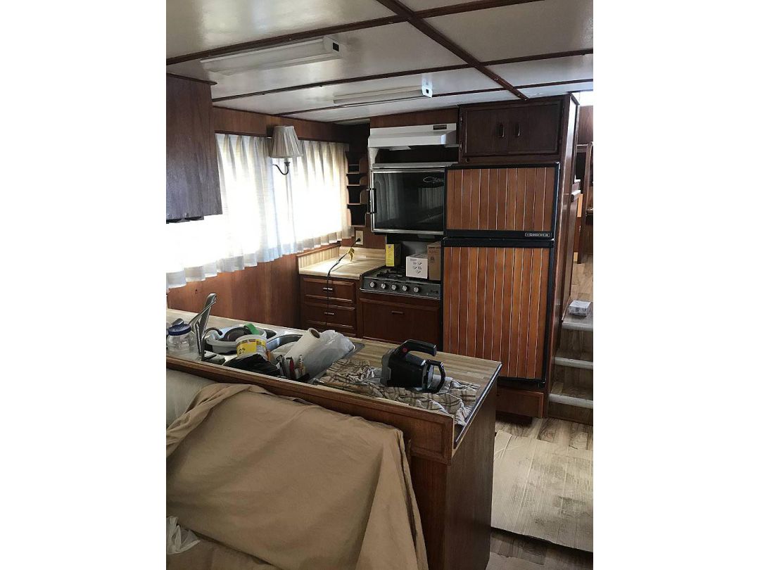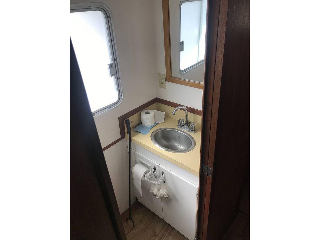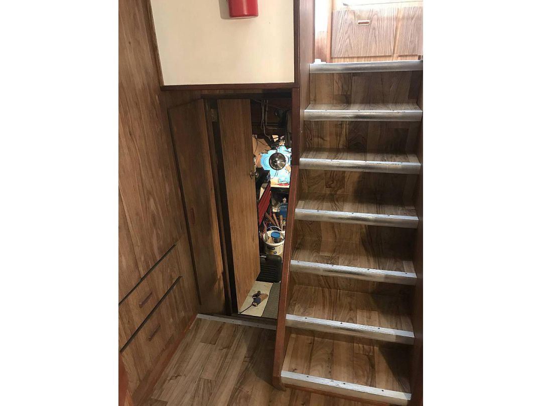 Bill Garden designed pilot house cruiser. Ideal for couple and guests or small family. High bulwarks for safety. Economical engines twinned for safety. Good size in wheelhouse and in salon.