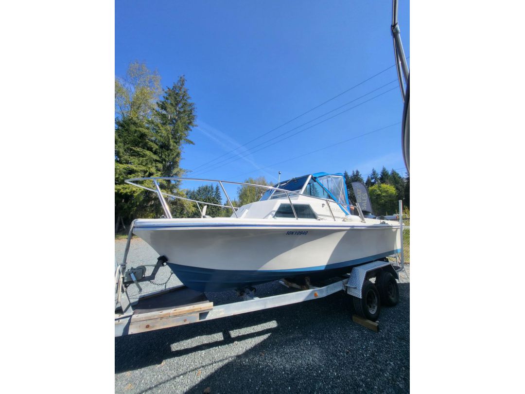 This fully maintained Sport fishing boat is ready for the water. The hull is in very good condition and has been well looked after and kept on a trailer since it was built in 1971 in Florida. It was trailered from Florida to Alaska for many years when it was eventually sold in Prince Rupert to its current owner in Canada where it is now registered. Most recent upgrades are 2 new batteries (2025) Kicker (2015) Main engine (2007) trailer Axles, Bearings and Springs redone (2021) 40gallon full tank (2010). Equipment included; Marine Head, Danforth anchor (300ft of line), 2 depth sounders, compass, 2 Scotty electric down riggers. Cruises with low fuel consumption at 30mph, full speed over 40mph.