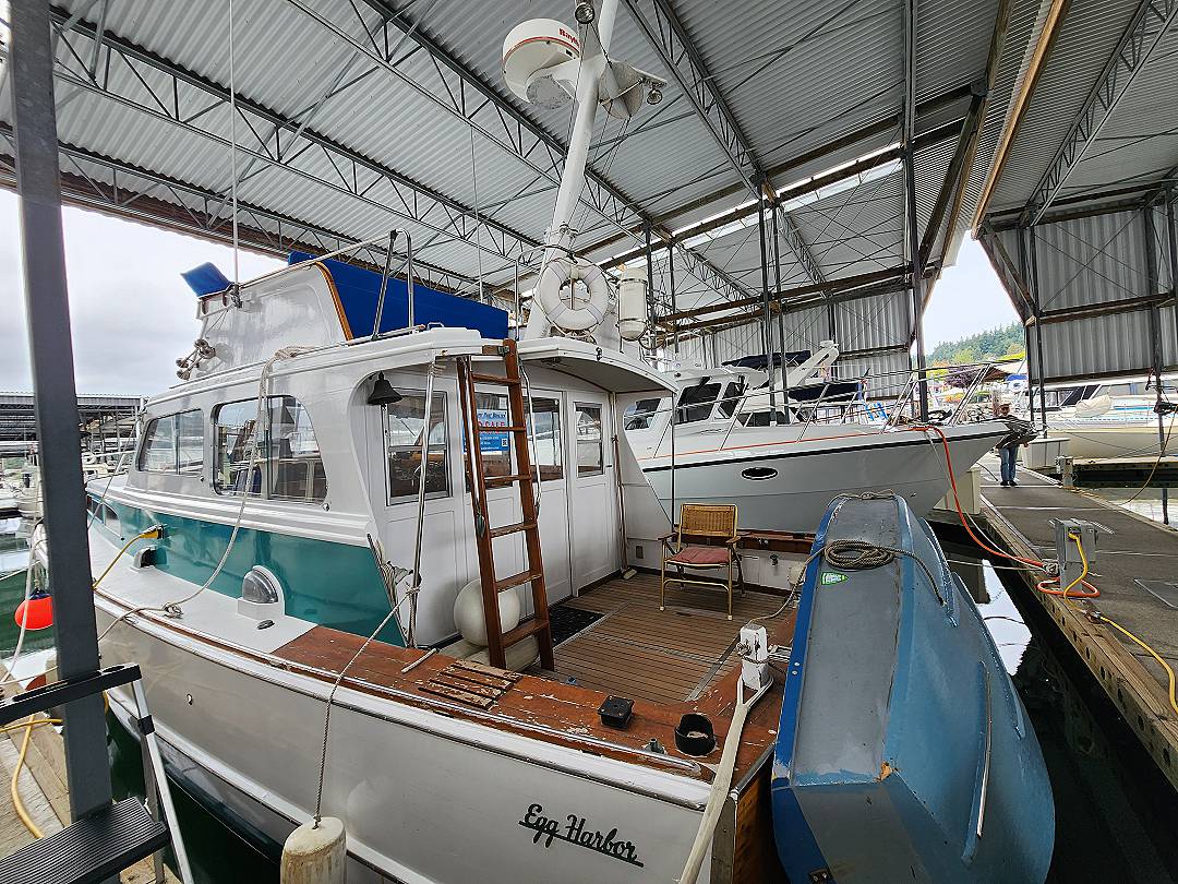 The initial Perkins diesel engines were replaced in 1996 to 240hp Perkins turbocharged diesels. Always moored in covered slip, this Egg Harbor has received unwavering attention to maintenance by its owner. An opportunity not to be missed For further details or to schedule a viewing, contact us by phone or email.