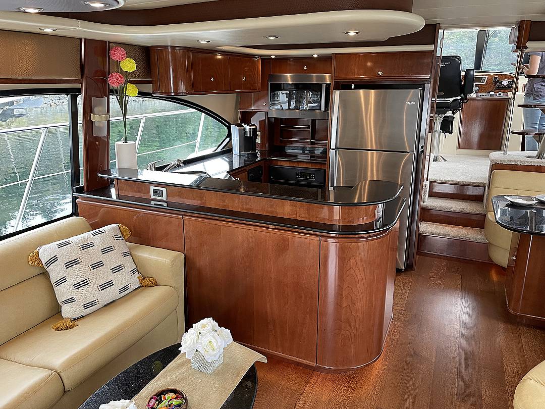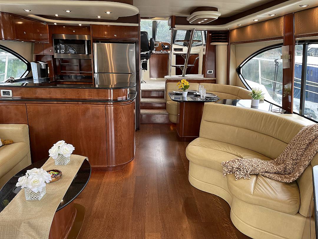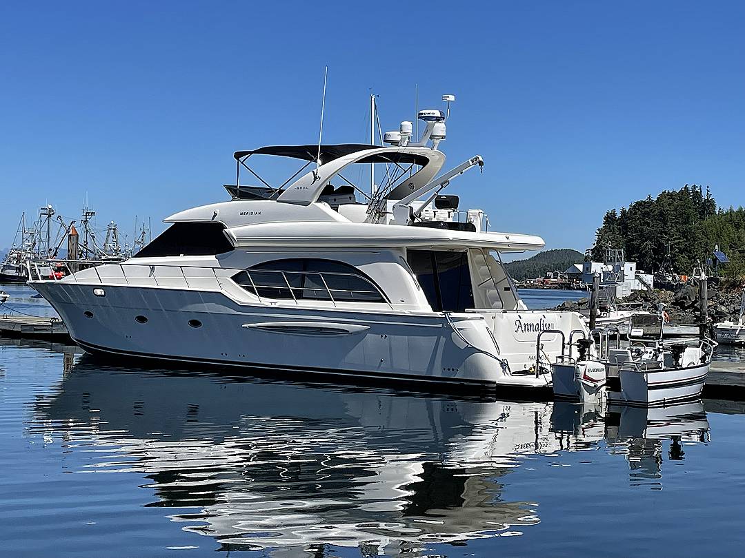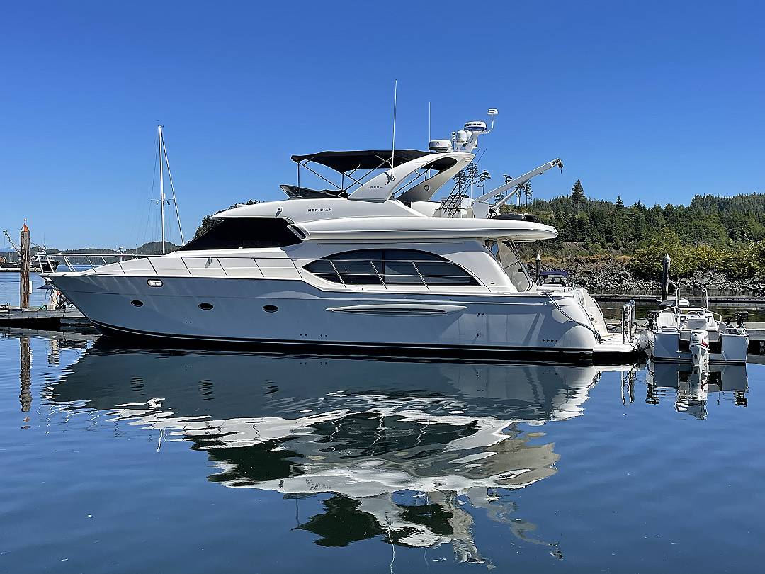 This 580 Pilothouse is a true Meridian flagship. In the last two years (2022 2023) this luxury yacht has been repaired, had replacements, and been revitalized to bring it fresh into today's yachting world. The salon, dinette, and galley have new flooring along with the great seating for many and the stellar view all round. Full electronics for navigation and communication are in the pilothouse and on the flybridge with great visibility from both. The vessel has a full beam master stateroom with ensuite and the two guestrooms share a full shower and head. Entire vessel has HVAC controlled independently in all areas. Washer and dryer, water maker, and other amenities complete the experience aboard. Cummins power in the twin engines can economically take you casually along your journey or can get you up and go if needed. An Onan generator will take care of your electric needs as you enjoy your adventure, and upon arrival, stern and bow thrusters will assist in docking in the smallest places.