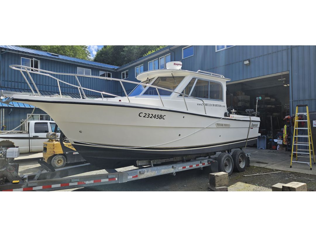 Guide retiring forces sale! This well kept Shamrock Mackinaw is ready to get you out to the fishing grounds with all the amenities. This boat has two steering stations and is set up to efficiently run as a fishing charter boat and is Transport Canada approved. Freshly serviced and stored under cover. The engine has service records and the sale comes with electric down riggers, spare alternator, starter and prop.