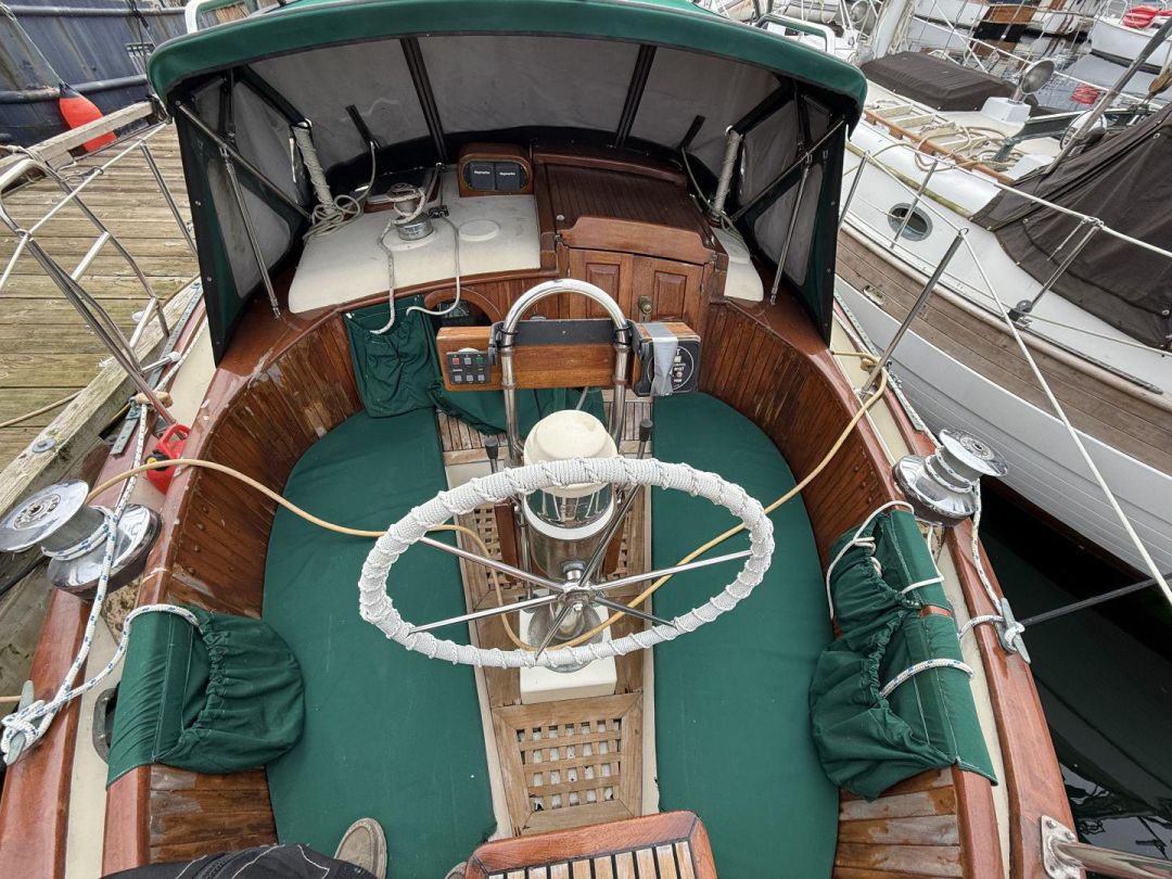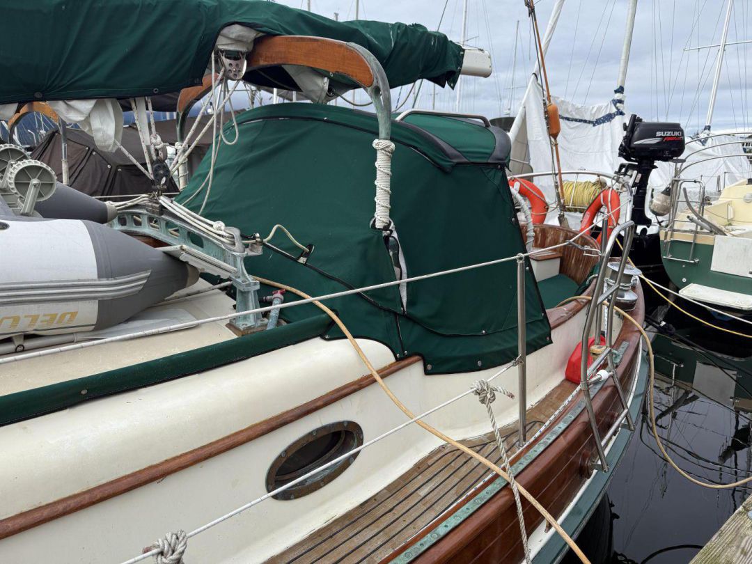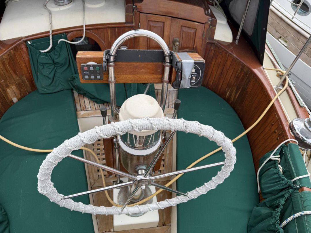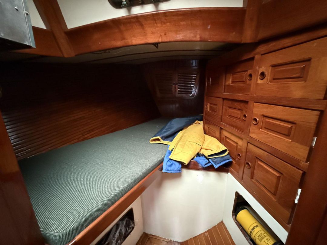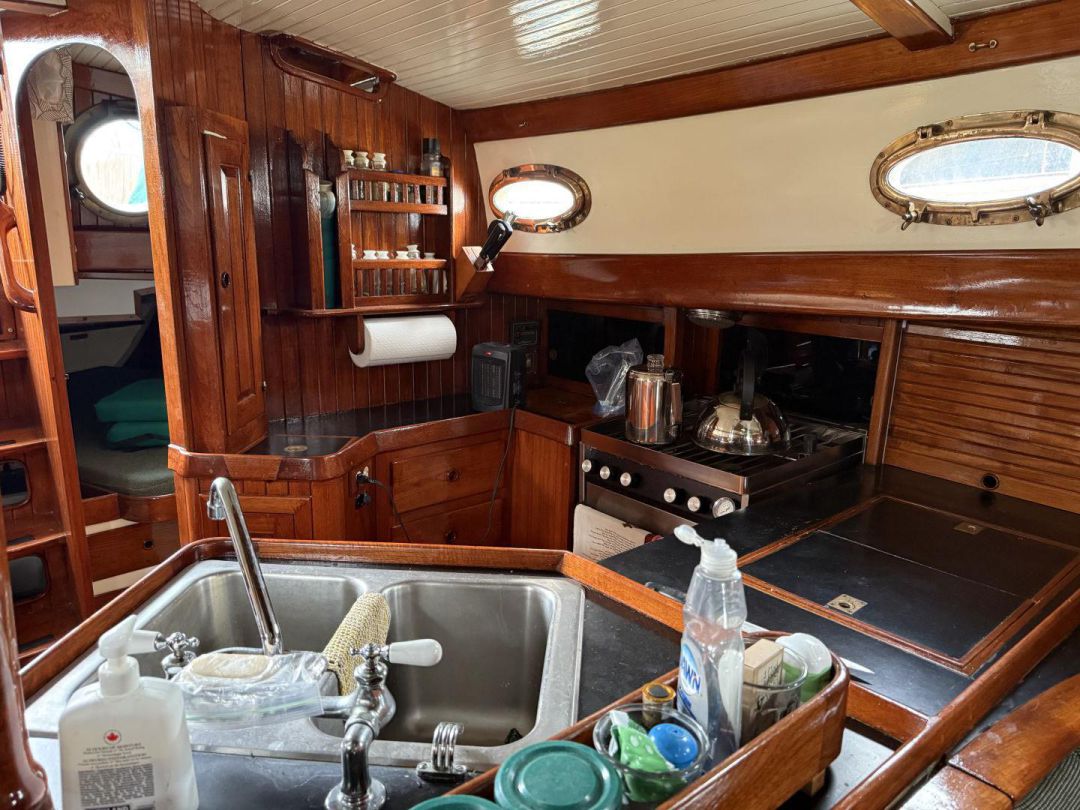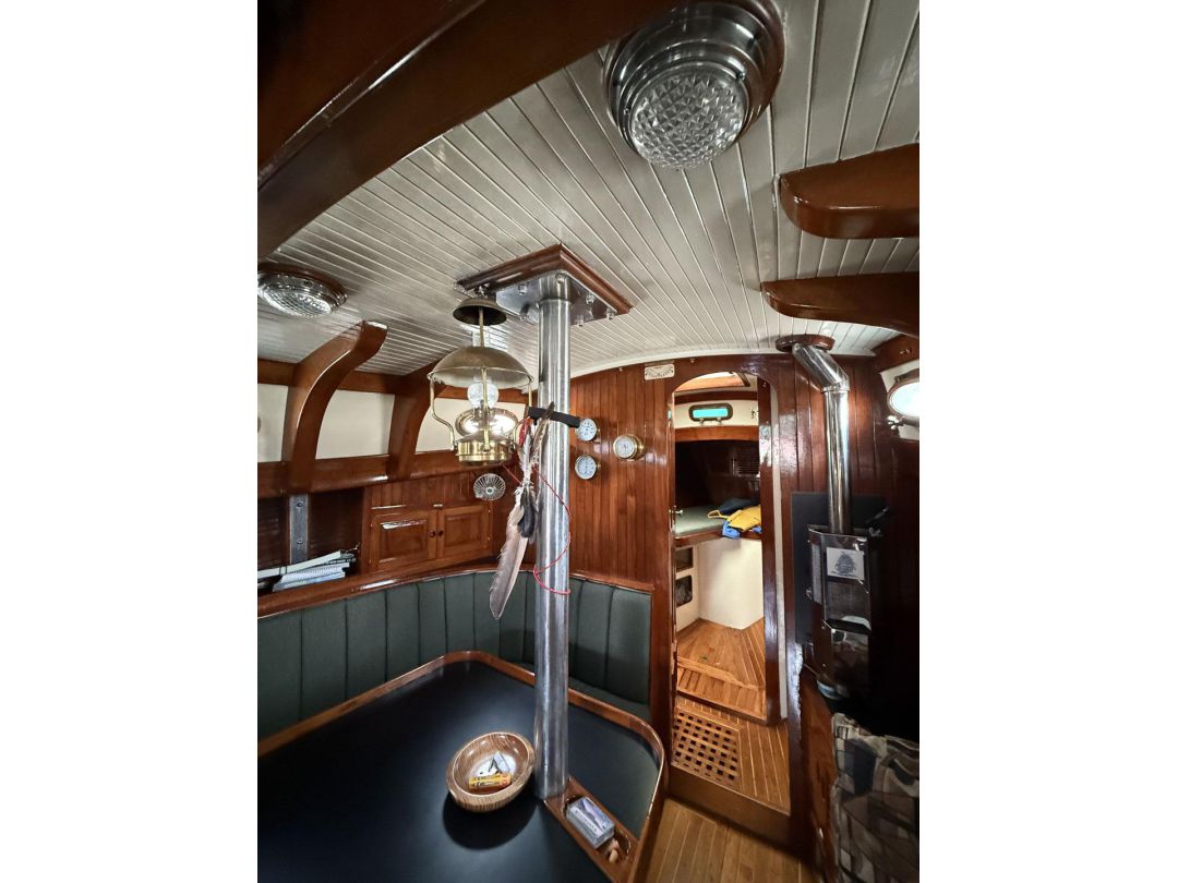 With her graceful canoe stern, robust hull, and rich teak interior, the Hans Christian 38T offers both safety and comfort for long-distance voyages. Below deck, the handcrafted woodwork, spacious saloon, and well-appointed galley create a warm and inviting retreat for extended cruising. Designed to handle demanding ocean passages, this yacht tracks beautifully under sail while providing a smooth, comfortable ride.