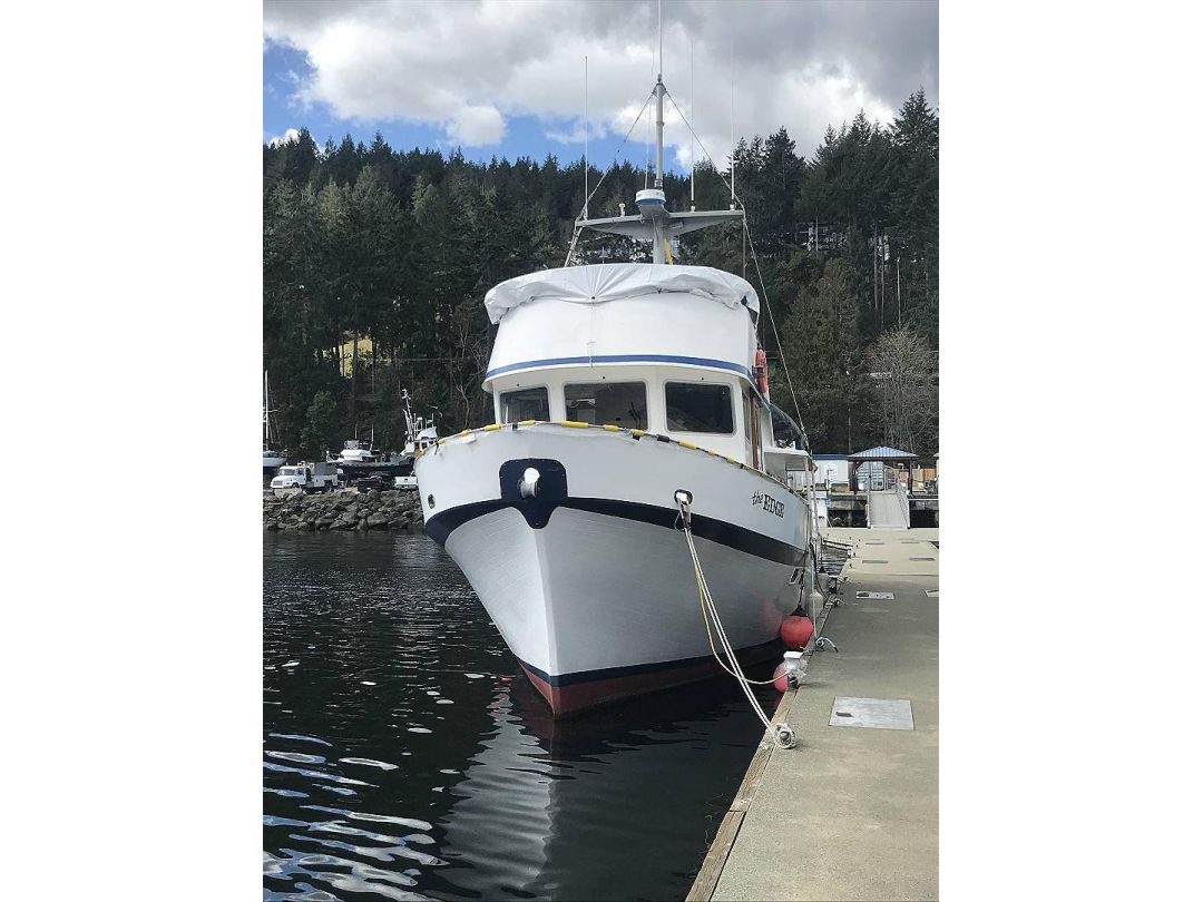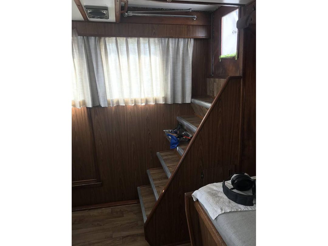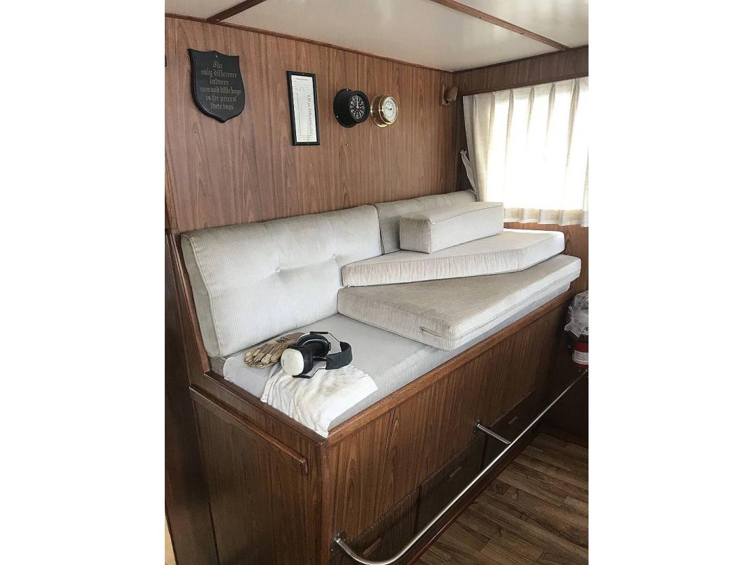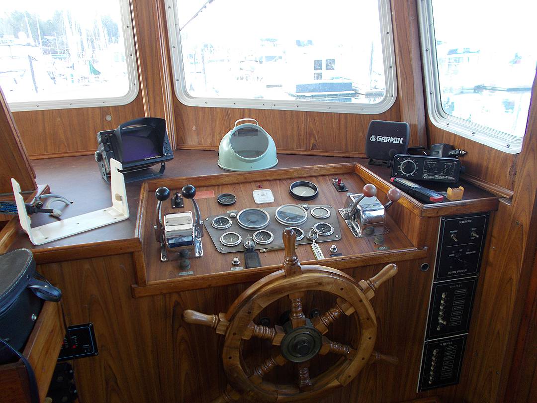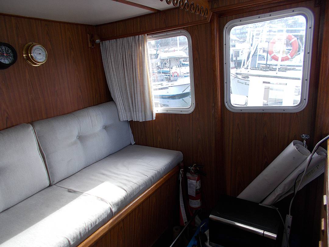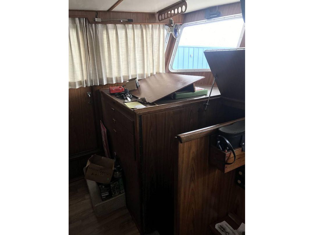 Bill Garden designed pilot house cruiser. Ideal for couple and guests or small family. High bulwarks for safety. Economical engines twinned for safety. Good size in wheelhouse and in salon.