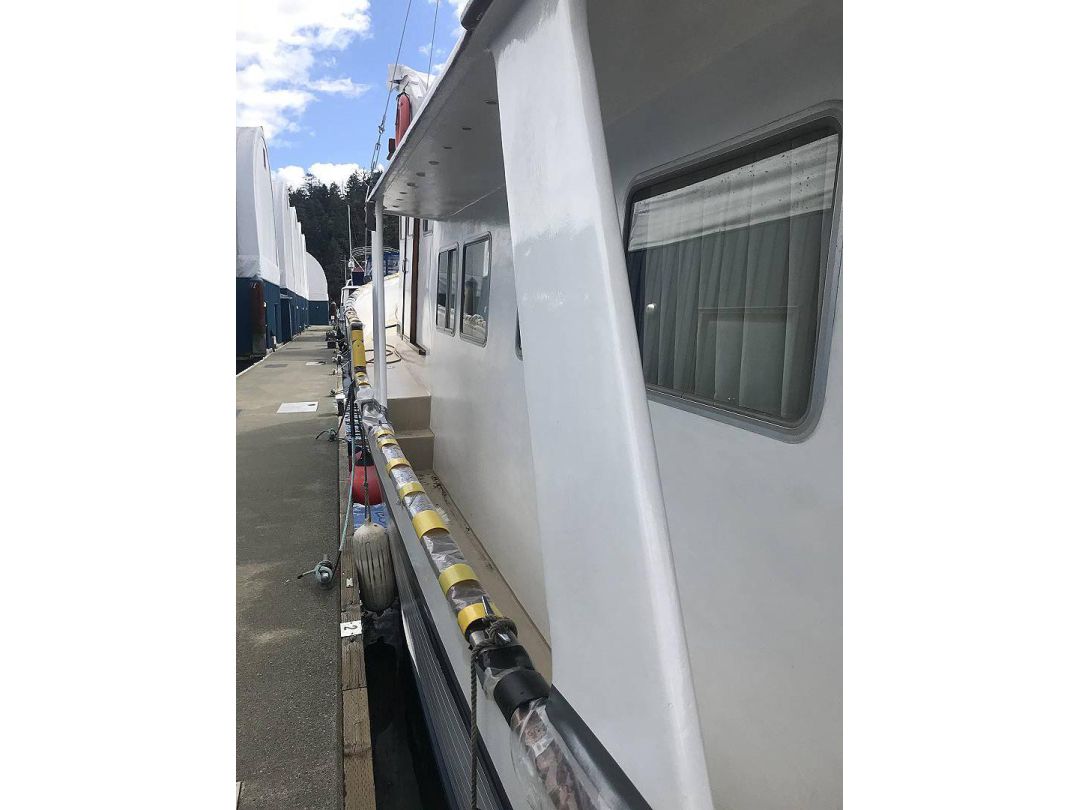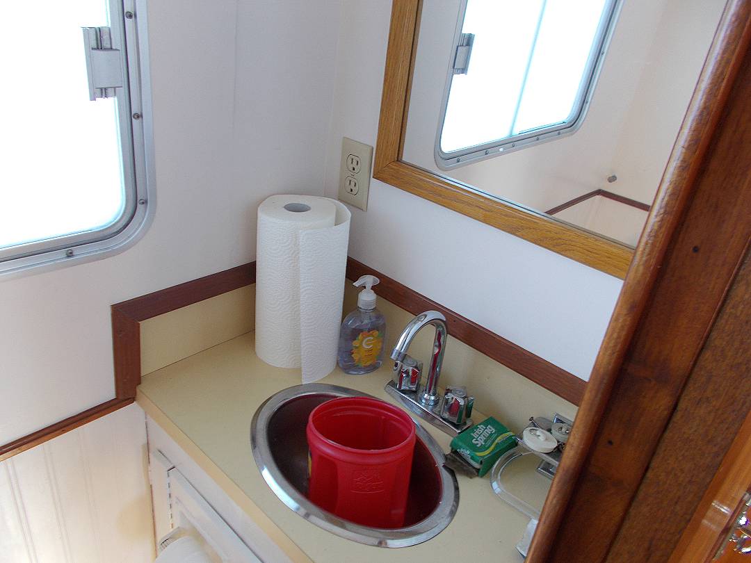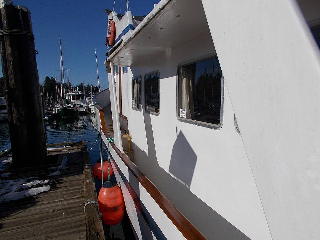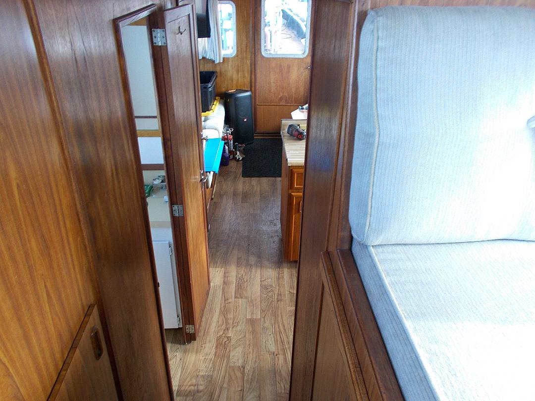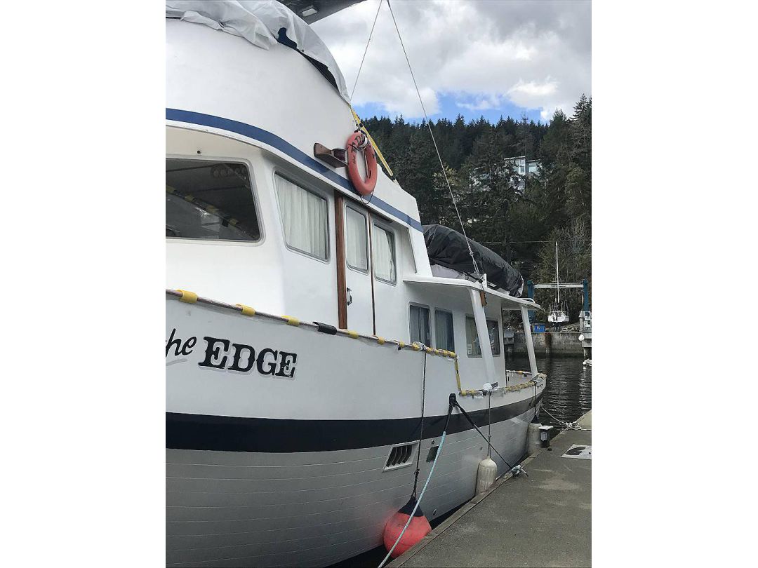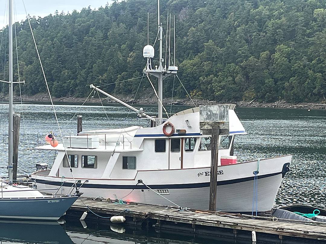 Bill Garden designed pilot house cruiser. Ideal for couple and guests or small family. High bulwarks for safety. Economical engines twinned for safety. Good size in wheelhouse and in salon.